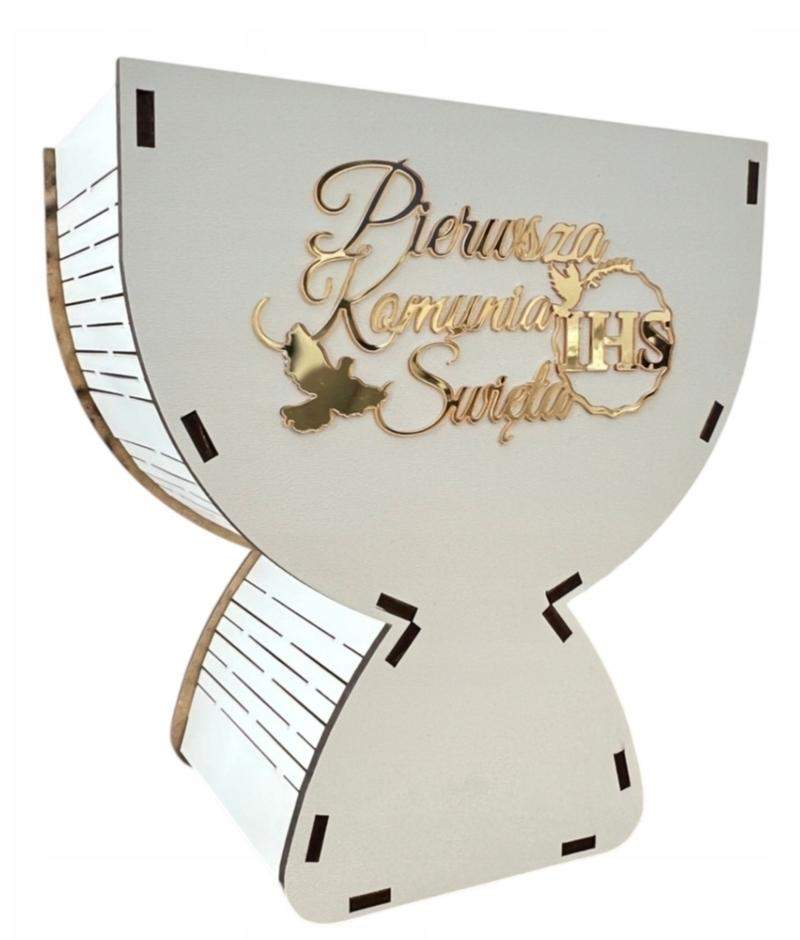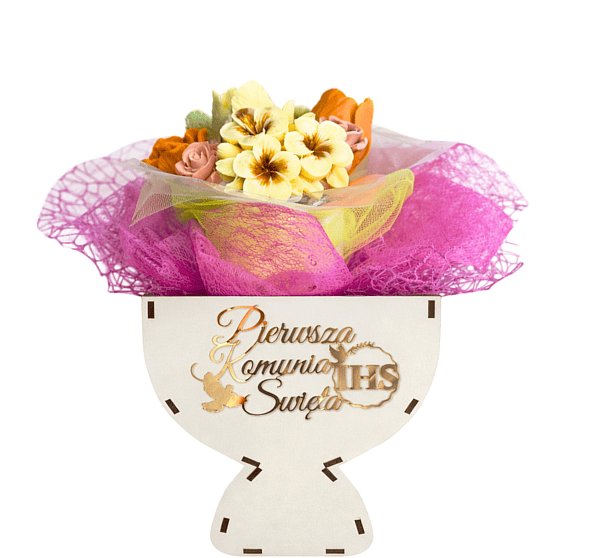 Bukiet z 9 kwiatków w kielichu komunijnym z płyty HDF o grubości 3mm.