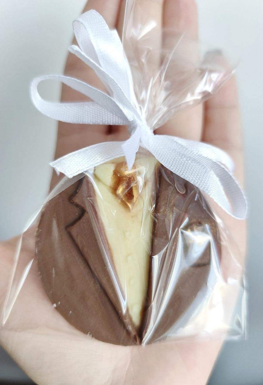 Czekoladka z białej i mlecznej czekolady. Waga +/- 25g. (waga czekoladki bez opakowania).