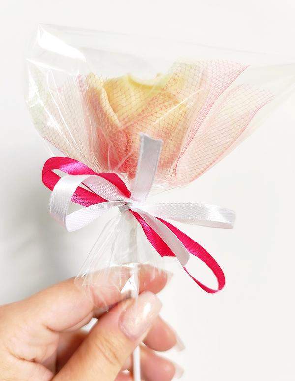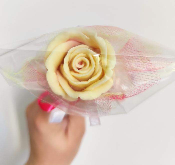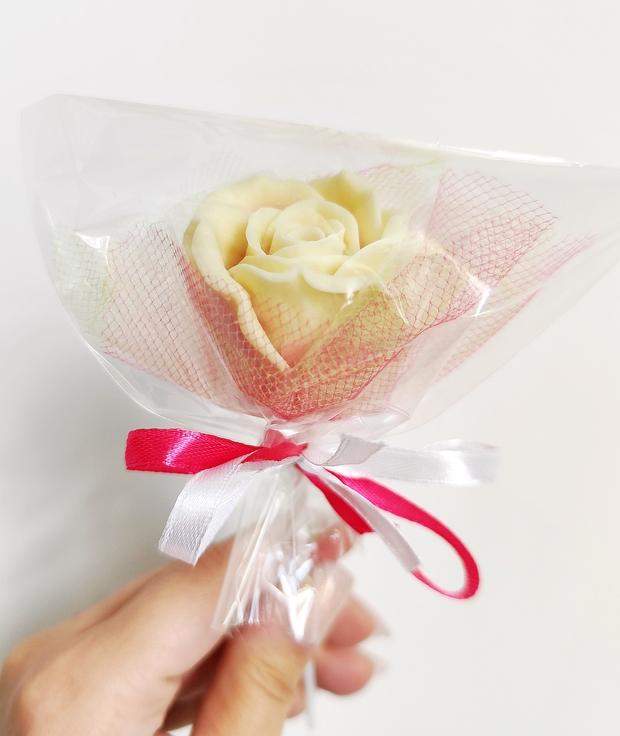 Róża z czekolady belgijskiej +/- 50g (waga samej czekolady bez opakowania).